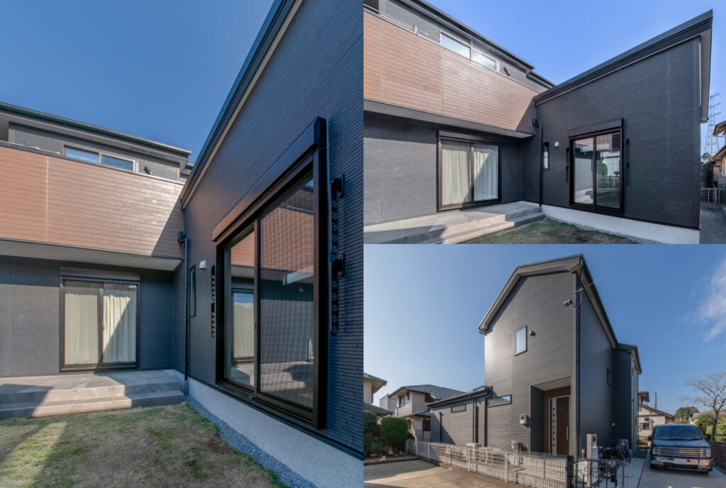 外壁材として窯業系サイディングを使用、耐久性だけでなく、モダンで洗練された外観デザインに貢献しています。