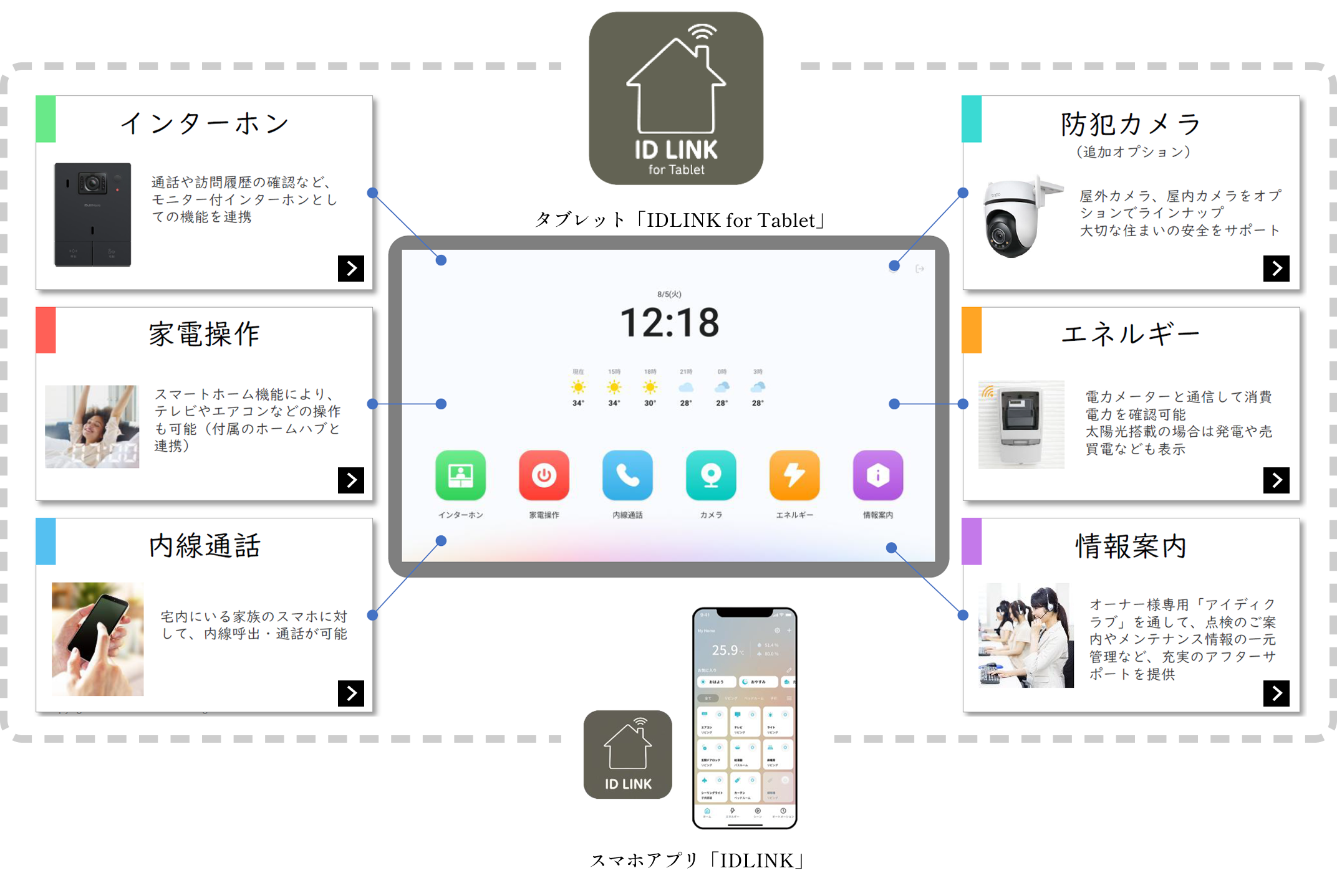 ID LINKの紹介 ID LINK トップページ 商品ラインナップ 注文住宅 リナージュ オーダー ID LINKの紹介 「ID LINK」で、日常生活をもっと便利に、もっと安心に。 IoTサービス「ID LINK」を導入することで、タブレット・スマホアプリから様々な機能が利用できます。インターフォンや家電の操作だけでなく、安心をサポートする機能も充実しています。 タブレット・スマホアプリで、「ID LINK」を利用できます。 ID LINK・ホームハブ 紹介資料 IoTサービス「IDLINK」紹介動画 店舗一覧 商品ラインナップ 施工事例 アフターサポート