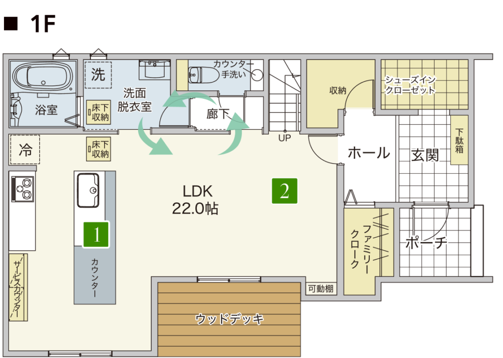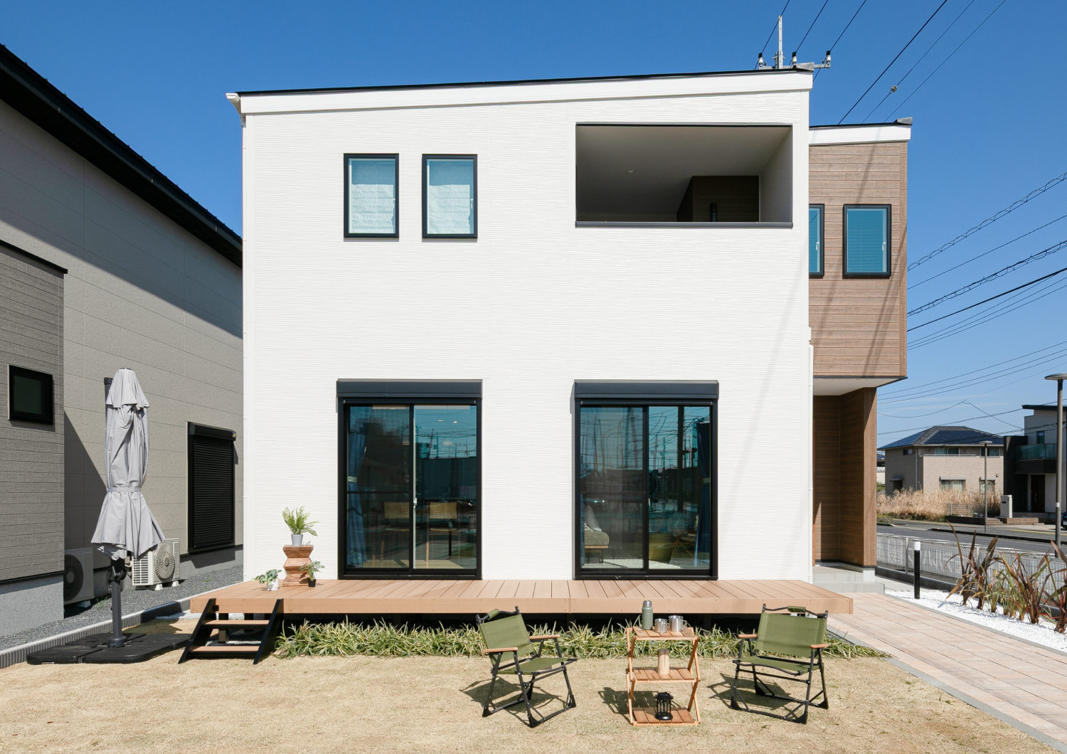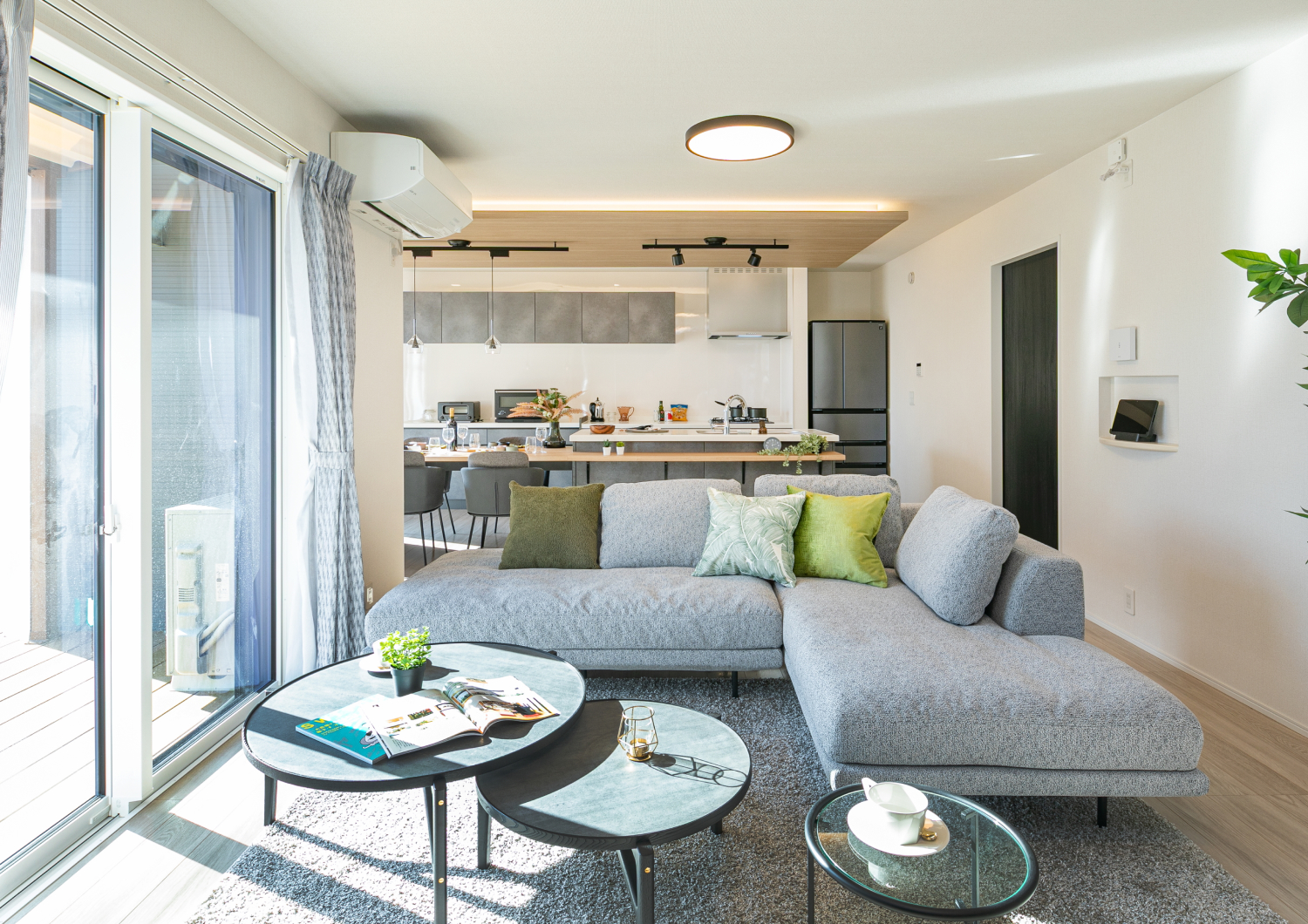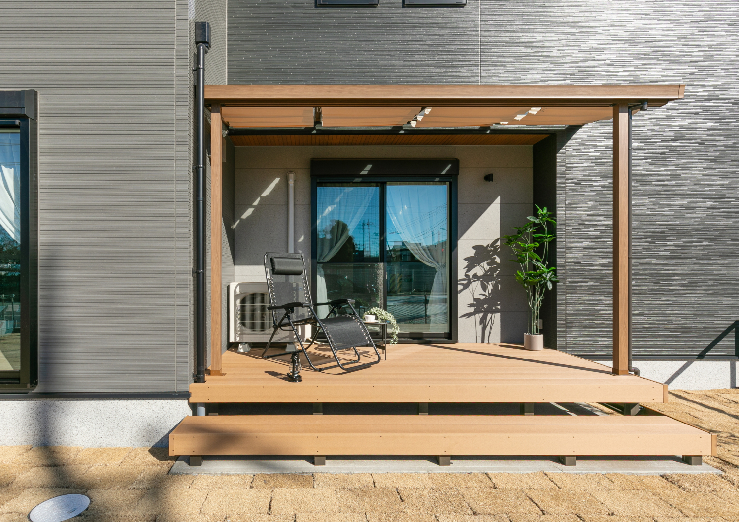 広々とした22帖のLDKには、家族の普段の時間も、来客のある日も、住まいの中心に心地よい”余白”を生みます。リビングと繋がるウッドデッキは、日常を彩るもうひとつの居場所。”光”と風を感じながらティータイムを楽しんだり、夜には星を眺める贅沢を。