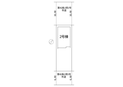 - 1号棟 北西:10m 南東:6m 2号棟 北西:10m 南東:6m