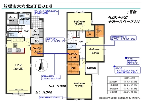 ●1階と2階にファミリークロークを設けた収納豊富な間取りです