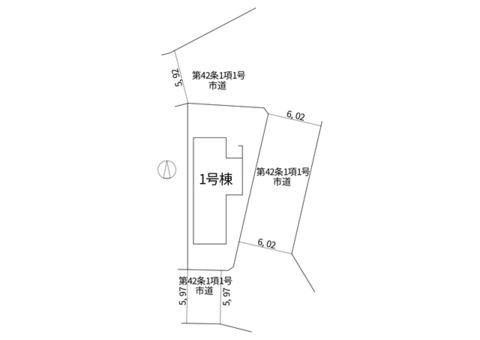 - 1号棟 東:6m 北:5.9m 南:5.9m