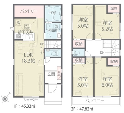 - 「間取」中の「S」の表示は「納戸(サービスルーム)」を意味しています。