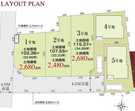- 4号棟 南:4.5m 5号棟 西:4.5m