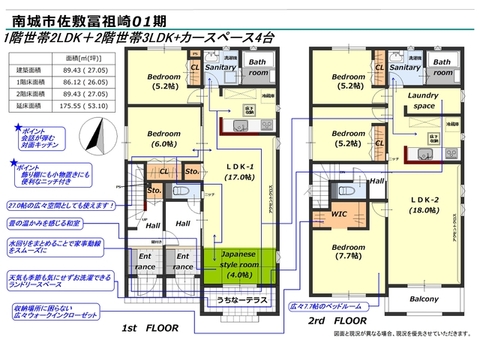- 1号棟:【その他制限事項】延床面積にうちな~テラス約4.97平米、インナーバルコニー約4.97平米含む