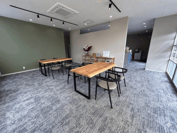 中古戸建再生住宅 リノベージュ [ キーワード ] 【自社施工事例】杉の一枚板が主役。質感豊かなインダストリアル空間(岡山営業所) 岡山営業所のオフィス空間をリノベーション。「オフィスらしさ」を脱却し、インダストリアルなスタイルをベースに、素材の力強さと居心地の良さが共存する空間へと仕上げました。 空間を引き締める、温かな照明計画 一般的なオフィス照明を排し、あえて明るさを抑えた「オフィスっぽくない照明計画」を採用。光と影のコントラストを計算し、仕事への集中力とリラックス効果を両立させた、落ち着きのある雰囲気を演出しています。 グループ会社の技術が光る「杉の一枚板」 接客・サービス空間の主役は、グループ会社で製作した杉の一枚板による高級テーブル。木のぬくもりと圧倒的な存在感が、お客様を温かく迎え入れます。 グレー×グリーンの洗練された配色 壁紙は都会的なグレーをベースに、アクセントとしてグリーンを配置。インダストリアルな無骨さの中に、自然の安らぎを感じさせるスタイリッシュな色使いにこだわりました。 機能性とコストを両立した床材 床面には、メンテナンス性に優れたタイルカーペットを採用。万が一の汚れにも部分的な張り替えが容易で、コストを抑えつつも高いクッション性とデザイン性を確保しています。 延床面積 96.19㎡(29.1坪) 築年 1987年 完成年 2026年 Before Before 前の施工事例へ施工事例一覧へ次の施工事例へ 店舗一覧 商品ラインナップ 施工事例 アフターサポート